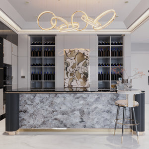 Our living room products are crafted using high-quality materials, including natural gemstones, wood, metal, and eco-friendly fabrics, ensuring durability and elegance.