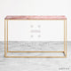 A thin, stainless steel base with a matt gold finish complements the silhouette of our White Agate console table. The rectangular top hosts a large polished piece of White Agate. Set it against the wall, back it up to a sofa, or pair it with our White Agate coffee table, side table, mirror, and nested tables.