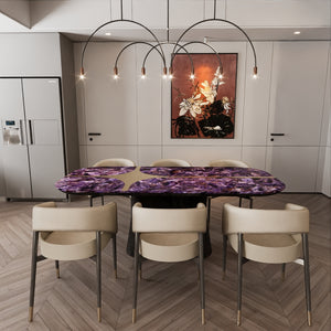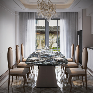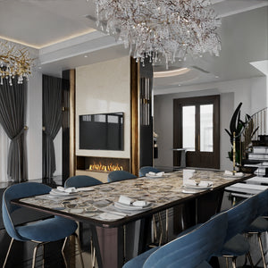Our dining room products are crafted using high-quality materials, including natural gemstones, wood, metal, and eco-friendly fabrics, ensuring durability and elegance.
