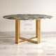 Blue Agate Dining Table Inspired by the Art Deco design, our Blue Agate Dining Table stands out with its detailed metal base. Blue Agate gemstone top sitting atop the gold-finish base takes away the show with its vibrant look and...