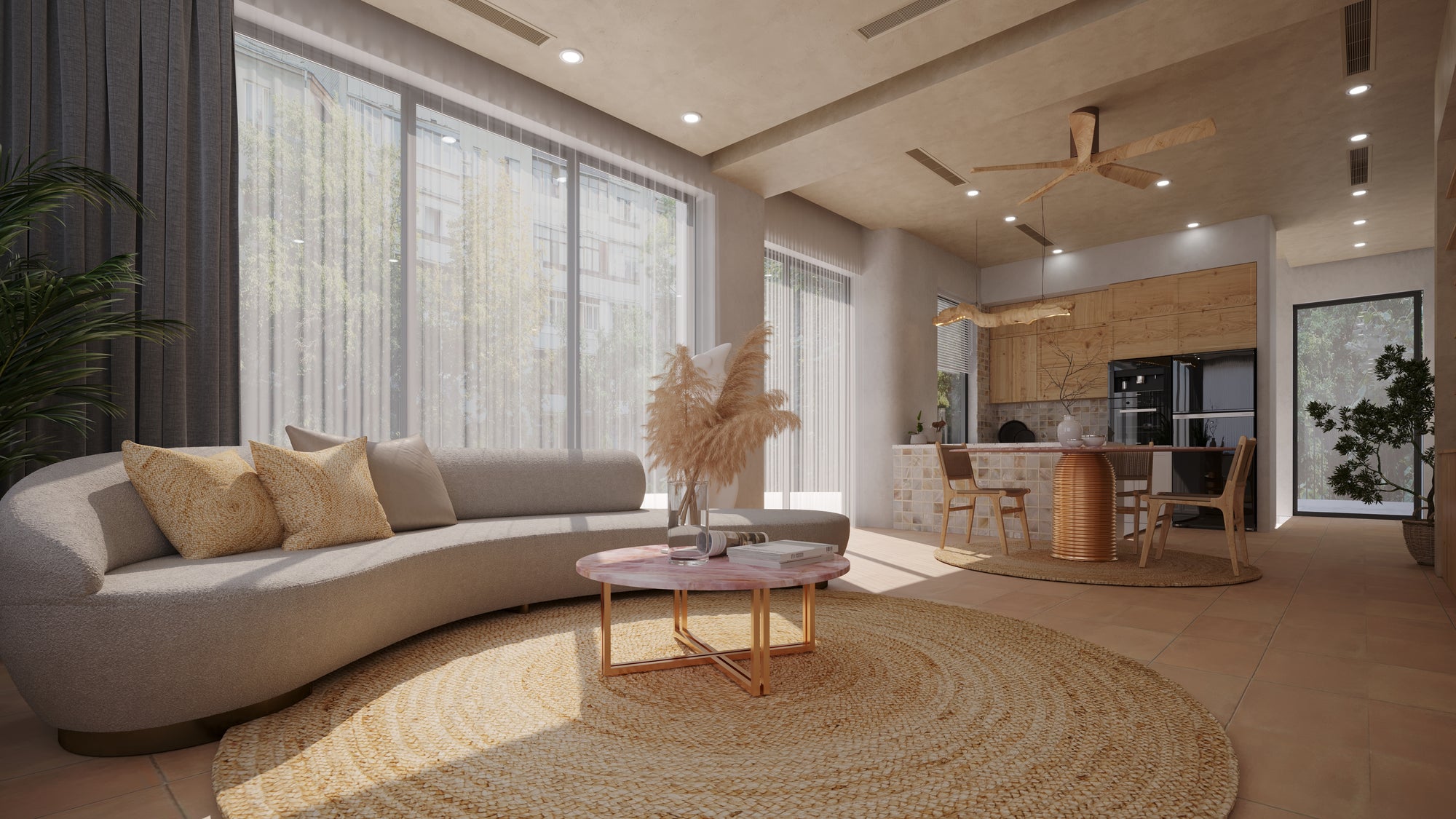 The ideal size depends on your space and layout. Our design team can assist you in selecting the right dimensions for your living room.