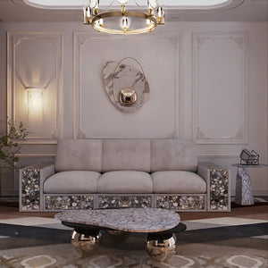 Our living room products are crafted using high-quality materials, including natural gemstones, wood, metal, and eco-friendly fabrics, ensuring durability and elegance.