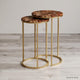 Rose Quartz Nested Side Table Rose Quartz is the stone of universal love that epitomizes the vibration of soothing calming energy. Antique gold finish stainless steel frame accented with Rose Quartz top makes for a befitting option for modern home...