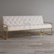 Streamline and luxurious, this turmeric brown sofa looks good in any interior design. It is covered in velvet upholstery and finished off with a mid-century modern base. The vibrant warm color will attract everyone and minimalist design gives you the freedom to style around it and make the surrounding truly unique.