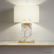 Grey Agate Gemstone is associated with the root chakras and is believed to enhance energy flows associated with intellectual pursuits. The stone also stands out because of its unique banding patterns and beautifully varying color tonalities. This elegant gemstone lamp featuring Grey Agate on its gold finish stainless steel base with an open-top linen lamp shade, is the perfect gift for your décor.