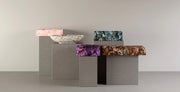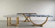 Blue Agate features a vivid shade that comes with comprehensive dyeing processes. You can play around with Blue Agates in your home because of their unique relationship with light. Even with the smallest amount of natural light, some blue agate accent pieces can light up the entire room. With its vibrant look and pleasant color palette, the Blue Agate Coffee Table with a brushed gold finish stainless steel base brings a touch of elegance to any space.